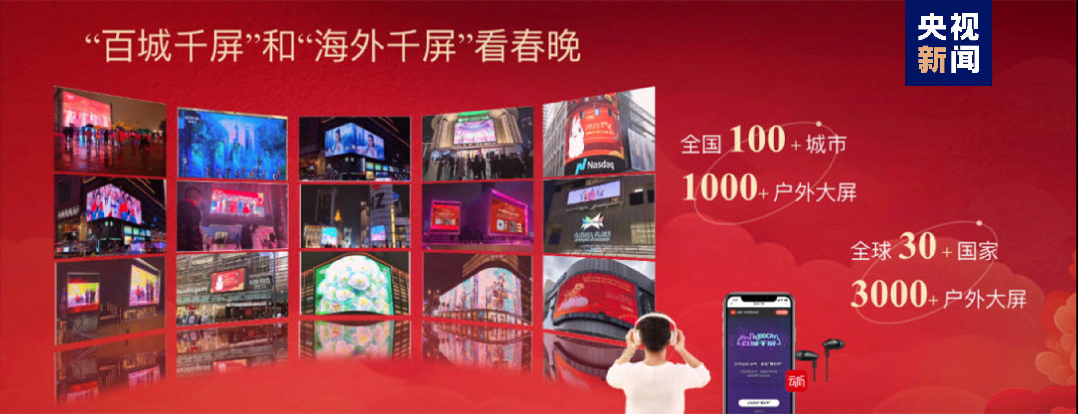 多屏传播,全景陪伴,满足多样化观看需求。总台以龙年春晚为契机,全面开启“央视频看电视”业务,全球用户可以更加便捷地收看春晚超高清视频,收听三维菁彩声。移动端直播“竖屏看春晚”通过5G场景下的移动拍摄、AI实时制作等技术,为用户提供更加丰富的竖屏内容。广大受众还能通过“百城千屏+海外千屏+云听”多平台同步观看、收听春晚直播。全国超100个城市的1000余块户外超高清大屏,全球六大洲34个国家、70座城市的3000余块公共大屏,将直播、宣介总台春晚。